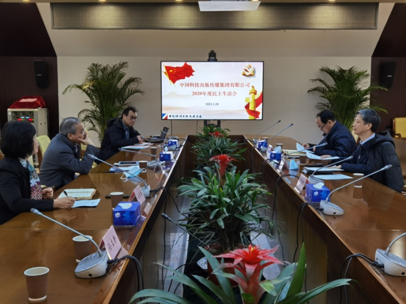 1月28日上午,中國科技出版傳媒集團有限公司召開2020度年領導班子民主生活會。集團黨委書記、董事長楊建華主持會議。